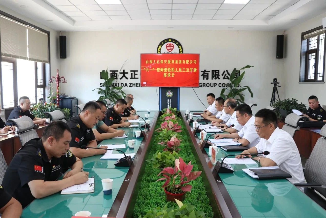 2024年8月1日,在第97個“八一”建軍節(jié),為深入貫徹落實(shí)習(xí)近平總書記對退役軍人工作作出的重要指示精神,增強(qiáng)退役軍人榮譽(yù)感,牢記報國初心,永葆軍人本色。山西大正保安服務(wù)集團(tuán)有限公司在公司中會議室隆重舉行了“八一”慰問退役軍人員工及軍屬座談會。集團(tuán)公司領(lǐng)導(dǎo)及機(jī)關(guān)退役軍人員工、各子(分)公司、城區(qū)中隊退役軍人員工代表、軍屬代表30余人參會。此次活動旨在向?yàn)楣景l(fā)展做出重要貢獻(xiàn)的退役軍人員工及默默支持他們的軍屬表達(dá)崇高敬意和深切關(guān)懷,進(jìn)一步弘揚(yáng)擁軍優(yōu)屬、擁政愛民的優(yōu)良傳統(tǒng)。