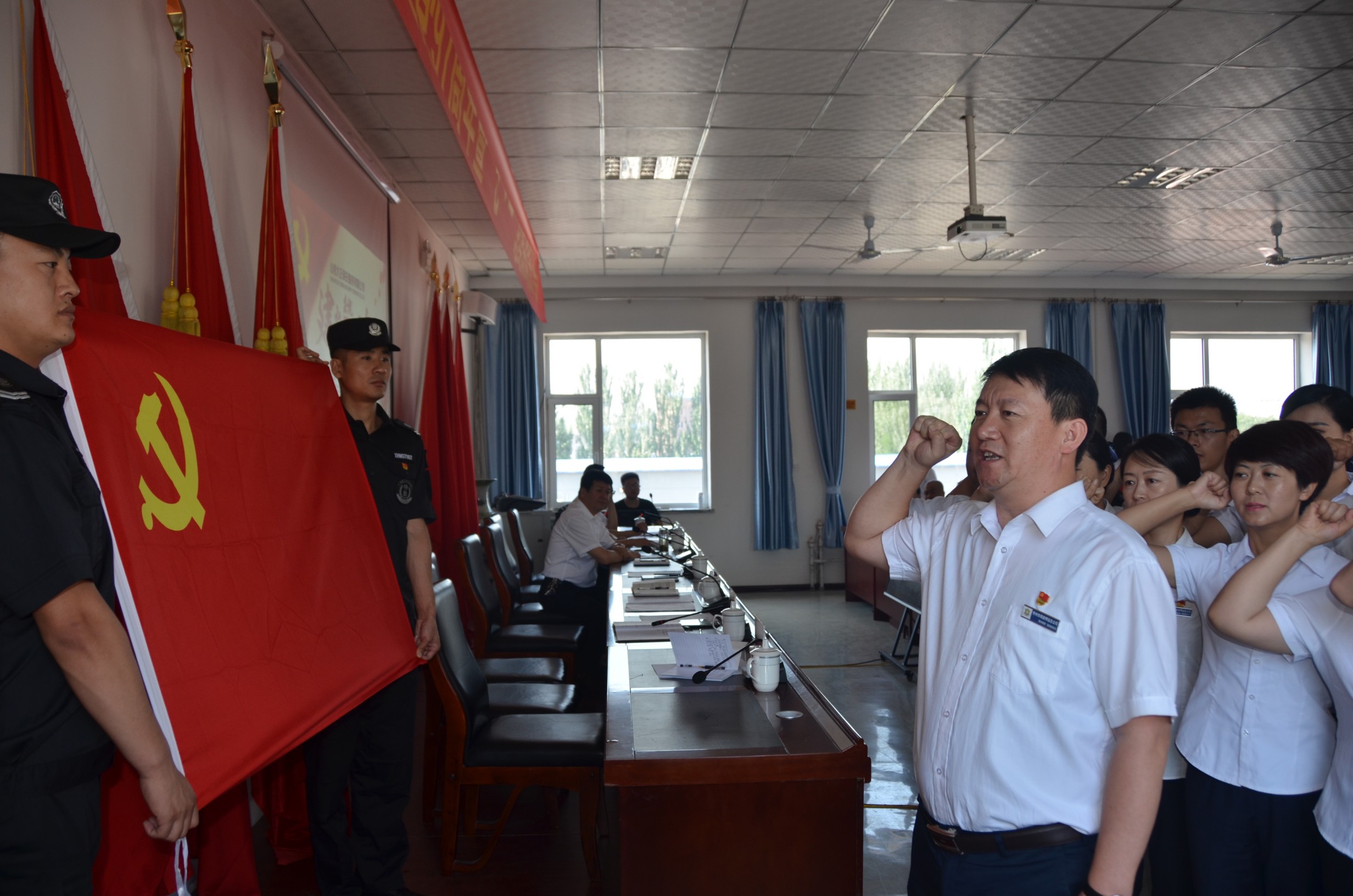 黨委委員、副總經(jīng)理趙培宏同志帶領(lǐng)新發(fā)展的8名黨員和4名預(yù)備黨員進(jìn)行了入黨宣誓。