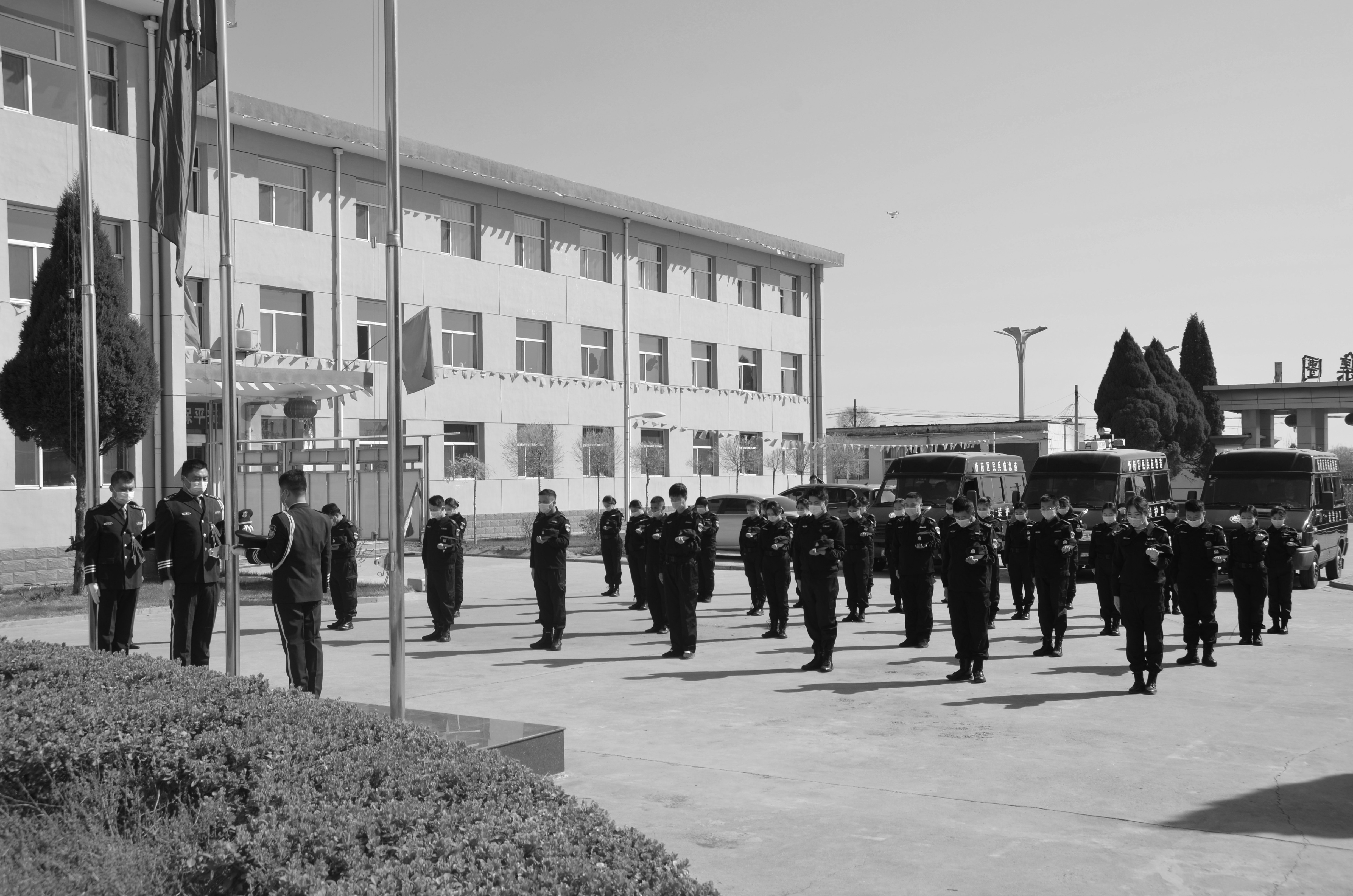 庚子清明,舉國哀悼。4月4日上午,山西大正保安服務(集團)有限公司在城南駐地舉行悼念活動,表達對抗擊新冠肺炎疫情斗爭犧牲烈士和逝世同胞的深切哀悼。本次悼念活動共有50余名干部職工共同參加。