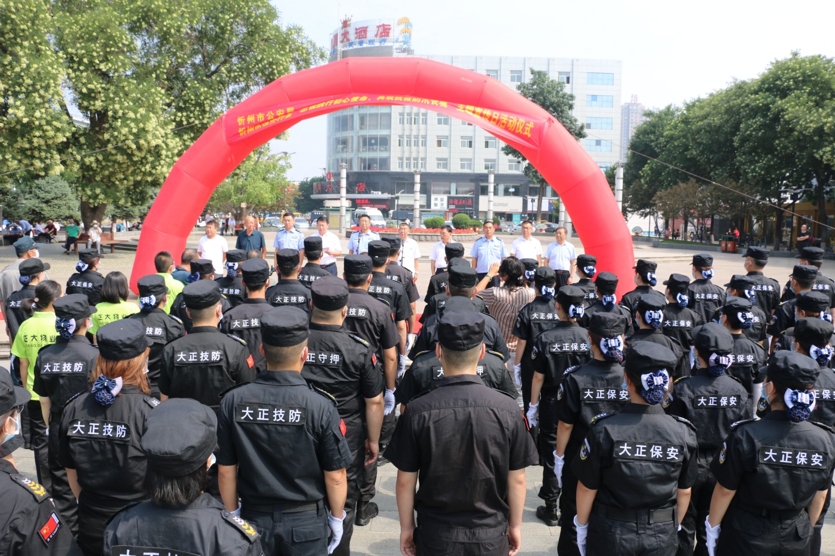 2020年7月24日,是第二個全國保安主題宣傳日,為充分展示忻州保安行業(yè)風(fēng)采,忻州保安行業(yè)在城區(qū)日月廣場舉行“忠誠踐行初心使命、共筑抗疫防汛長城”主題宣傳日活動。忻州市公安局、忻州市保安協(xié)會、忻州市公安局直屬分局、忻州市公安局忻府分局、山西大正保安服務(wù)有限公司及全市11家保安企業(yè)負(fù)責(zé)人、保安隊員代表120余人參加活動。