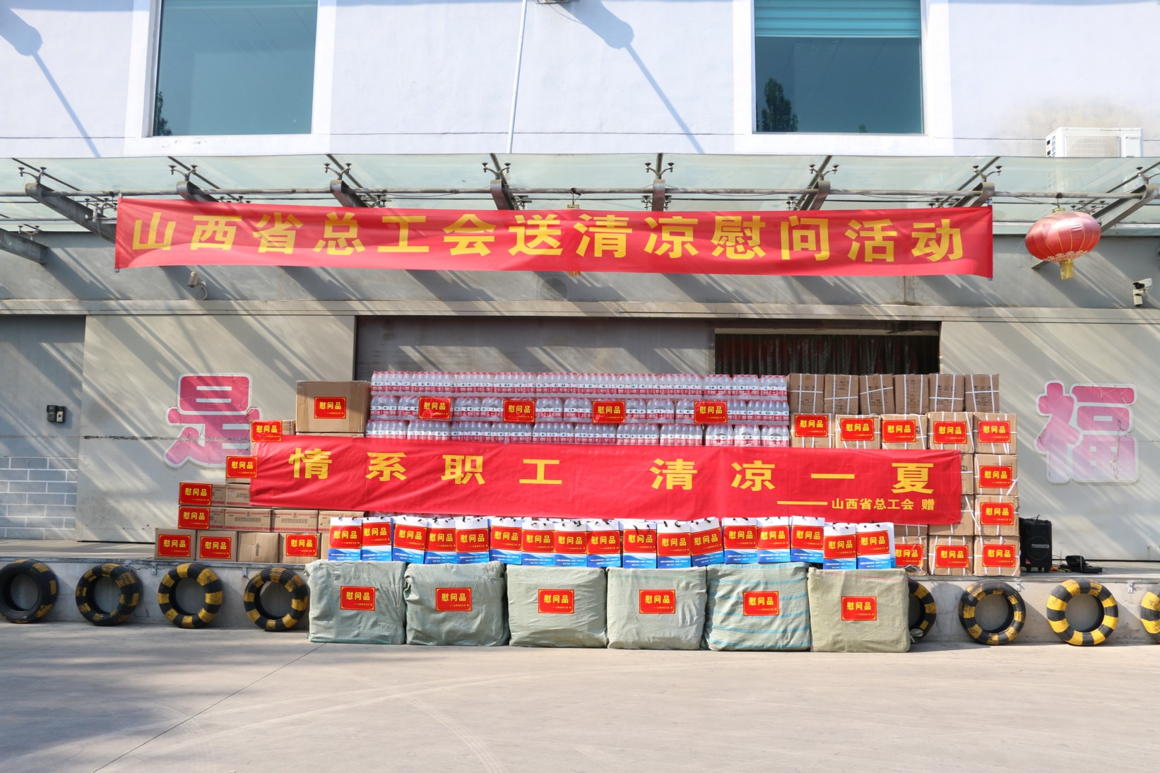 活動中省、市總工會領(lǐng)導(dǎo)及公司黨政班子成員親自為員工發(fā)放慰問品。