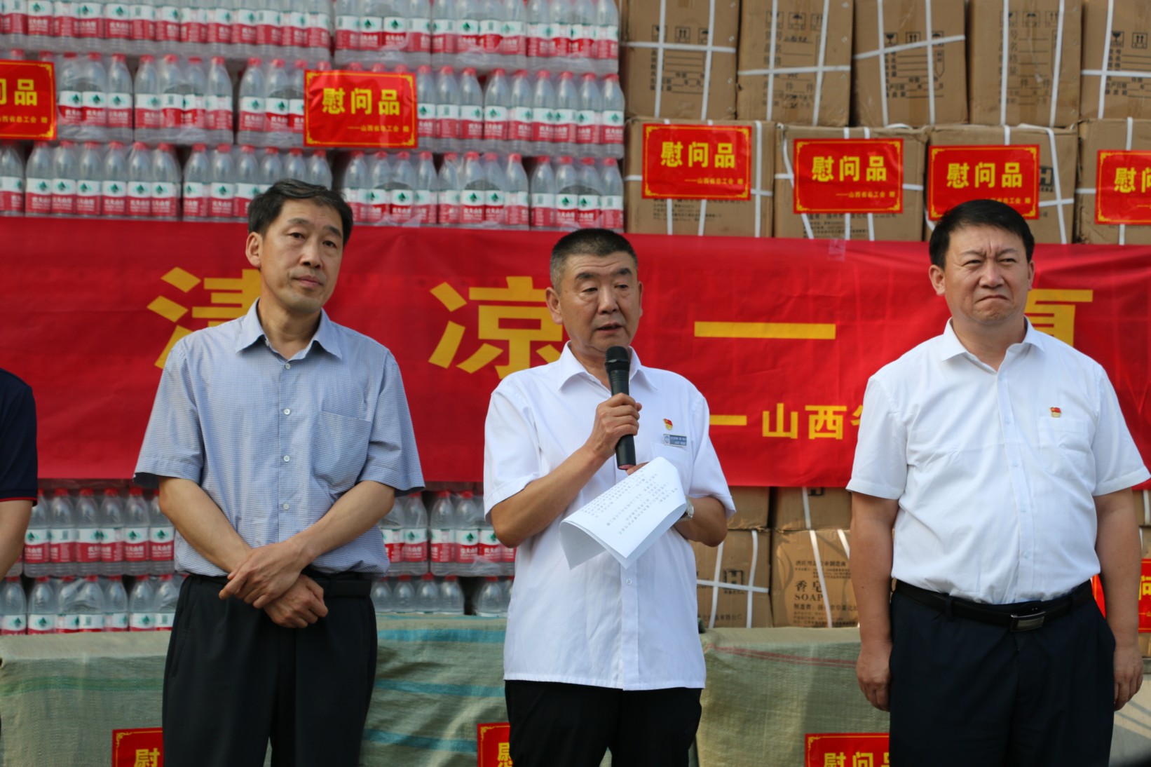 7月27日下午,省、市兩級總工會領(lǐng)導(dǎo)蒞臨我公司舉行“夏季送清涼”慰問活動,為堅守在一線的職工朋友們送上夏日的關(guān)懷與問候,同時為職工朋友們贈送一批防暑用品和對公司困難職工進行慰問。省總工會黨組成員、副主席張亞琳;省總工會經(jīng)濟技術(shù)部副部長高偉;市人大副主任、市總工會主席魏廣才;市總組黨組書記、常務(wù)副主席王書鴻;市總工會副主席曲文斌;市總工會副主席左文蕾;公司黨政班子成員參加此次活動;顒佑缮轿鞔笳0卜⻊(wù)有限公司黨委書記、董事長張躍生主持。