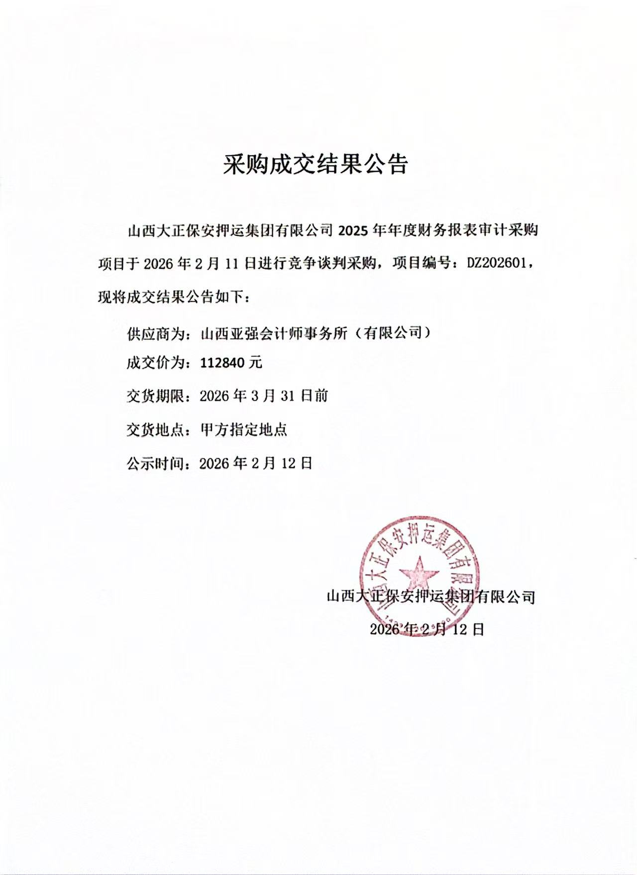 成交結(jié)果公示