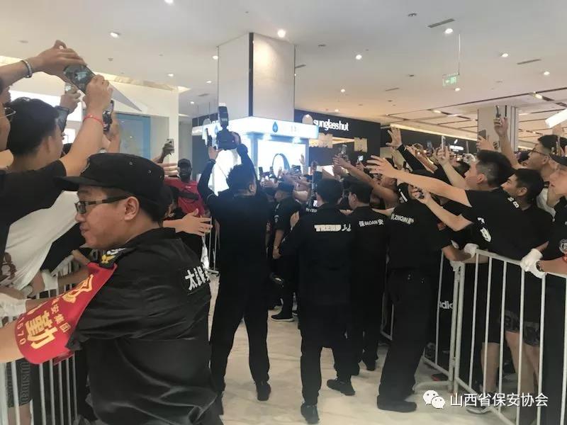 2018年7月15日,美國NBA著名球星德維恩-韋德“2018年中國行”品牌代言簽售會第三站在省會太原茂業(yè)天地隆重舉行,由于韋德作為籃球明星偶像,在中國知名度、關(guān)注度、影響力較高,深受青少年球迷的喜愛,粉絲眾多,加之活動現(xiàn)場又在人員密集的商場內(nèi)舉辦,不確定因素增猛,安保難度加劇,為確;顒影踩樌M行,按照太原市公安局的安排部署,太原保安服務(wù)有限公司抽調(diào)300余名保安員承接了此次安保任務(wù)。