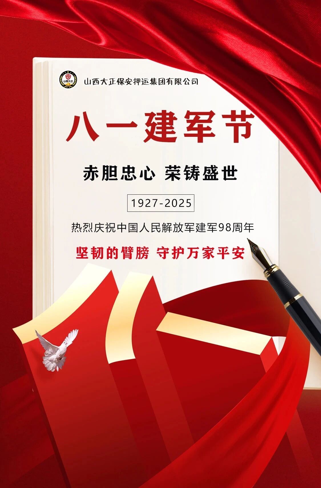 軍旗獵獵,初心如磐。為熱烈慶祝中國人民解放軍建軍98周年,傳承紅色基因,弘揚(yáng)優(yōu)良傳統(tǒng),進(jìn)一步增強(qiáng)退役軍人的榮譽(yù)感、歸屬感和幸福感。8月1日,山西大正保安押運(yùn)集團(tuán)有限公司組織召開迎“八一”建軍節(jié)暨退伍軍人座談會(huì)。集團(tuán)公司黨委委員、副總經(jīng)理王明生,黨委委員邢春生及領(lǐng)導(dǎo)班子成員,機(jī)關(guān)、各子公司退役軍人員工代表和軍屬共計(jì)40余人齊聚一堂,共憶軍旅生涯,共話職責(zé)使命,共謀公司發(fā)展。