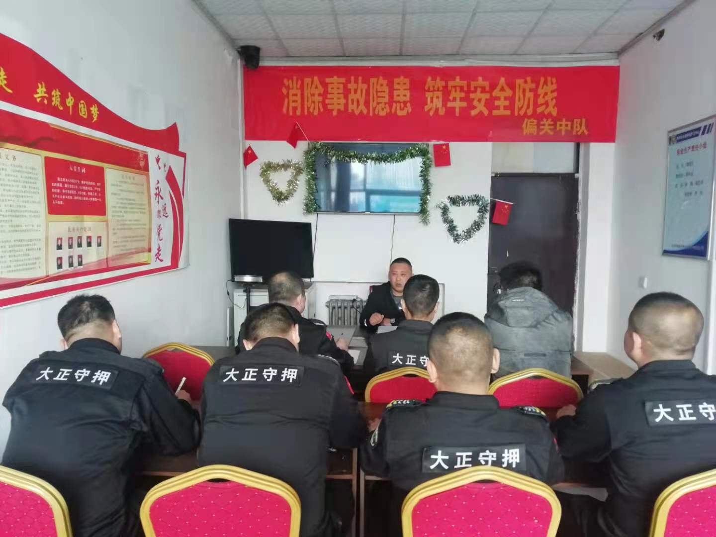 4月26日,守押公司副總經(jīng)理、調(diào)度中心主任張龍、守押調(diào)度中心副主任栗利鋒到偏關(guān)中隊(duì)進(jìn)行督導(dǎo)檢查工作。 先后對(duì)守庫(kù)室、安全防護(hù)設(shè)施等進(jìn)行了查看,并現(xiàn)場(chǎng)抽查了槍支彈藥配備、配置、保管設(shè)施等物防、技防設(shè)施以及各類(lèi)臺(tái)賬,運(yùn)鈔車(chē)輛勤務(wù)運(yùn)行等情況。