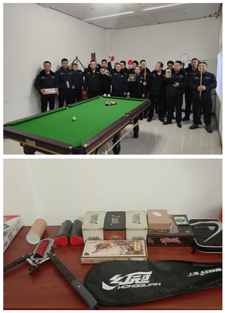 伴隨著公司的發(fā)展和業(yè)務(wù)的增多,守押繁峙中隊日常和臨時任務(wù)逐漸增加,待勤值班和留隊人員增多。為了加強中隊的精神文明建設(shè),豐富員工業(yè)務(wù)生活,讓隊員們業(yè)余時間能放下手機運動起來,遠離各種不良娛樂,保持積極向上的健康身心狀態(tài),中隊通過眾籌捐贈的方式,添置了臺球桌、羽毛球、乒乓球、象棋、拉力器、三國殺卡牌等活動和運動器材。期間,隊員們積極捐贈,爭先為中隊建設(shè)添磚加瓦,體現(xiàn)了超強的團隊凝聚力,主人翁意識和奉獻精神。強精神,健體魄,促團結(jié),穩(wěn)業(yè)務(wù),為創(chuàng)明日輝煌,我們將人人爭先。