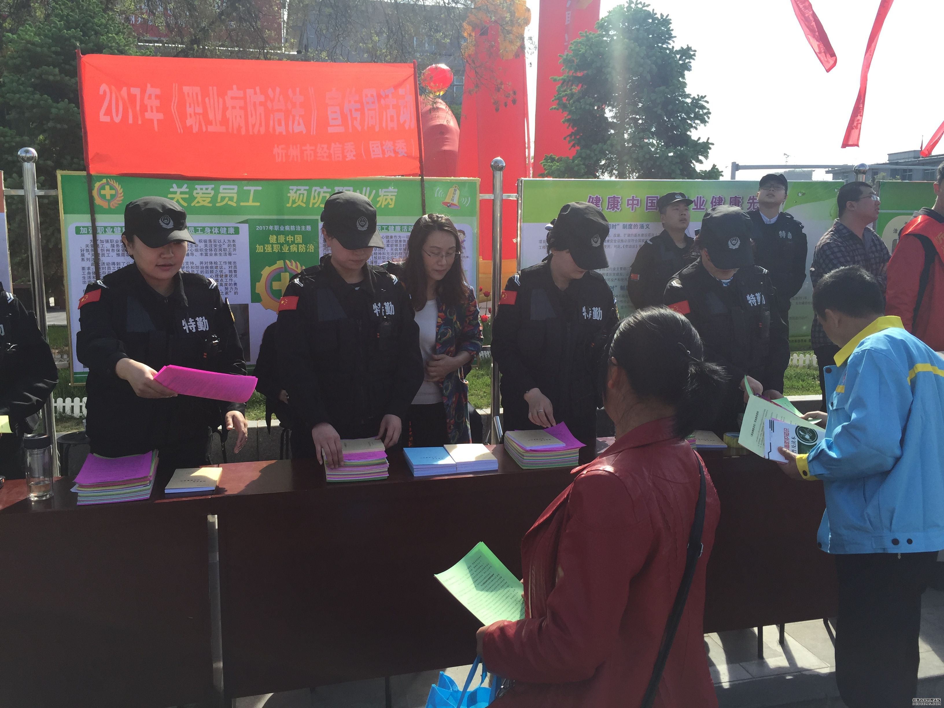 此次活動(dòng)由市安全生產(chǎn)委員會(huì)、市經(jīng)信委等六家單位主辦,副市長范建民出席啟動(dòng)儀式并講話,市總工會(huì)、安監(jiān)局、發(fā)改委、衛(wèi)計(jì)委、工商局、人社局等多家單位以及企業(yè)代表參加了活動(dòng)。儀式結(jié)束后,我們?cè)谛麄鲄^(qū)向市民發(fā)放宣傳資料和宣傳書籍,并向熱心市民講解職業(yè)病的危害性以及防治的必要性。臨近夏天的天氣已然很熱,我們穿著厚重的制服站在太陽下,汗水悄悄地順著臉頰滑下。我們的精神風(fēng)貌得到了國資委領(lǐng)導(dǎo)的肯定,良好的形象受到了市民及其他活動(dòng)單位的贊揚(yáng)。
